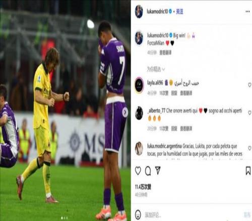 在米兰2-1击败佛罗伦萨后,莫德里奇更新社交媒体庆祝胜利的。