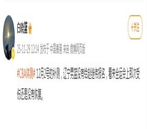 赵继伟因伤缺席了新赛季的CBA体测,且为了保险起见,根据媒体人白晓篮报道:“12月2号的补测,辽宁男篮没有给赵继伟报名,看来全运会上那次受伤还是没有恢复。”