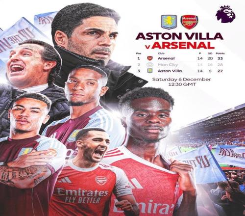 英超前14轮过后,阿森纳以10胜3平1负积33分的成绩高居榜首,领先排名第二的曼城5分,而维拉则积27分排名第三。北京时间周六20:30,阿森纳将会做客挑战维拉。