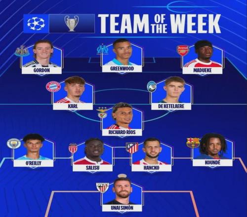 马杜埃凯入选了欧冠本周最佳阵容!