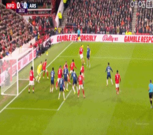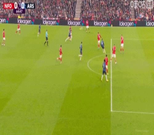 易边再战,久攻不下的阿森纳第53分钟开始换人调整,萨卡,热苏斯和梅里诺替补出场,换下厄德高,马杜埃卡和哲凯赖什。第58,阿森纳前场右侧高位逼抢,萨卡断球后突破下底传中,赖斯点球点处迎球凌空扫射,门将奎尔斯奋力将球扑出。第64分钟,阿森纳左路快攻再造杀机,赖斯下底传中,萨卡小禁区前沿抢点超近距离头槌攻门,皮球飞向球门右下死角,奎尔斯奋勇将球扑出底线。第70分钟,赖斯禁区左侧前沿斜吊门前,梅里诺超近距离头槌攻门顶偏了。第80分钟,埃纳解围时疑似手球,主裁在VAR确认后认定没有问题,阿森纳没有获得点球。最终阿森纳无力攻破诺丁汉森林大门,客场0:0闷平诺丁汉。