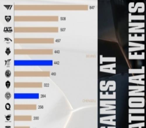 LCP发布各战队选手参加国际赛事场次:T1GENBLG位列前三